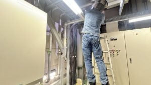 現場ではブライン配管及び冷媒配管の接続工事、